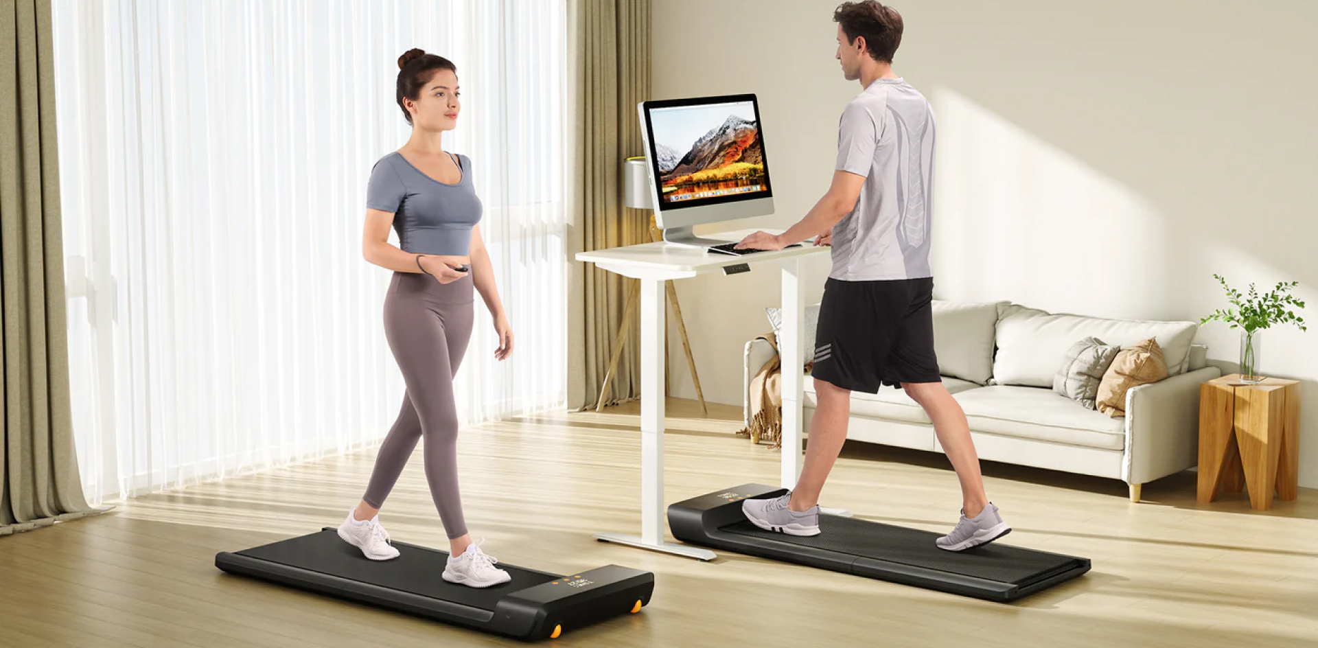 Старая новая тенденция работать стоя может получить второе дыхание благодаря компактным складным дорожкам Walkingpad. A1 Pro можно разместить под рабочей консолью, чтобы совместить приятное с полезным: размяться во время работы.